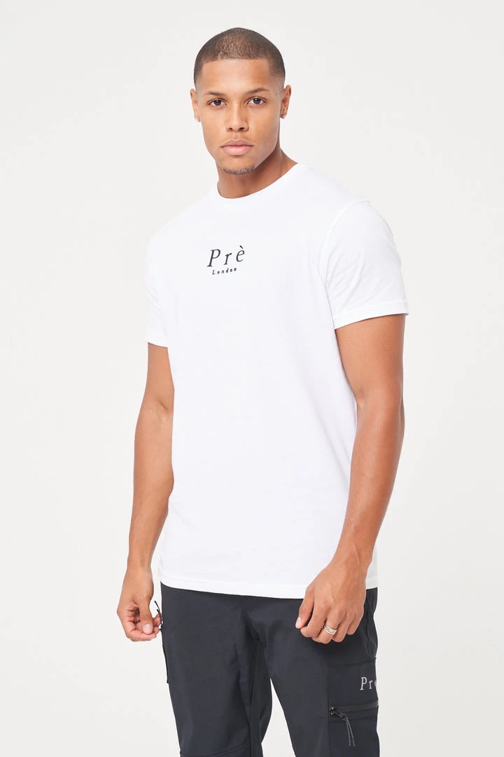 Core T-Shirt in White,  Highest quality logo printing using the latest injection moulded technology. Our T-shirts are fitted to the arms and designed to be styled with our Prè London Jeans/Trousers.