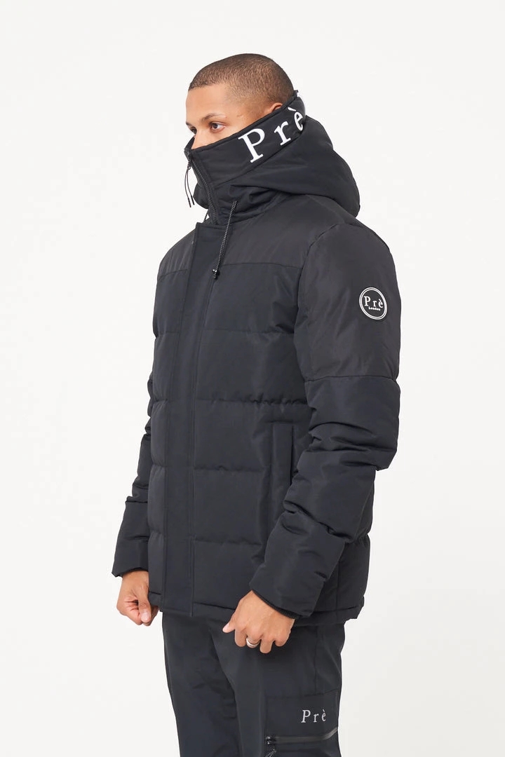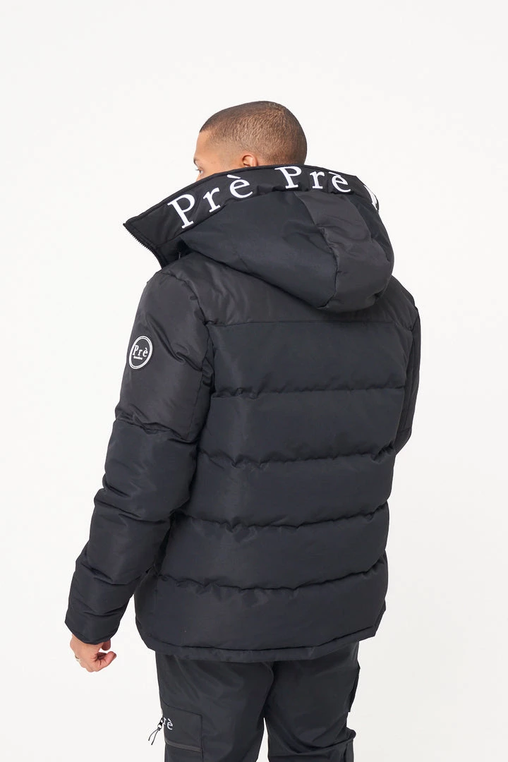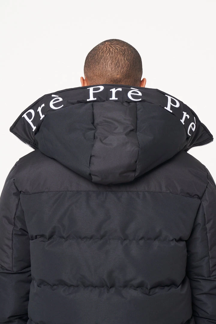 Premium styling features Embroidered repeat “Prè” Logo around the hood, Badge branding to the left arm.