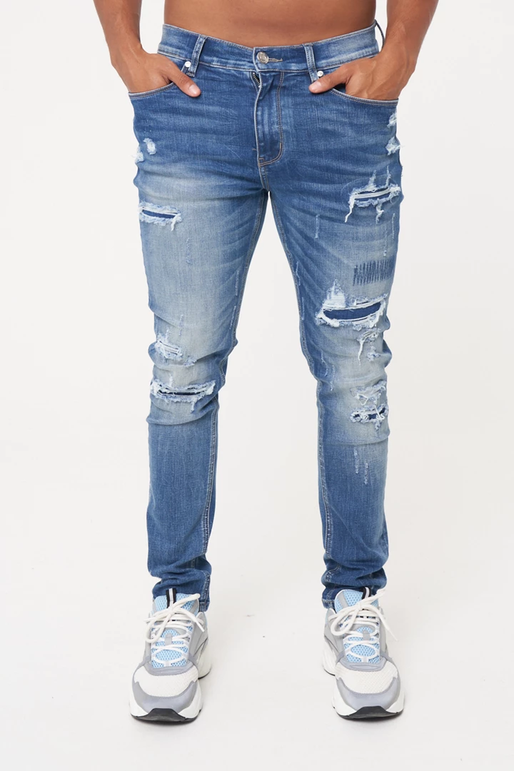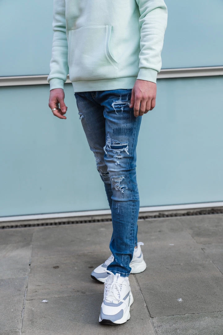 - These slim- fitting jeans also feature a fly fastening, classic 5 jean pockets setup & Prè London branding patch to back waistband.