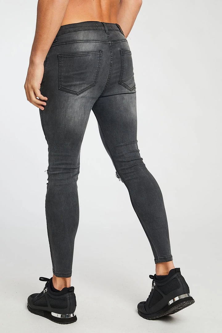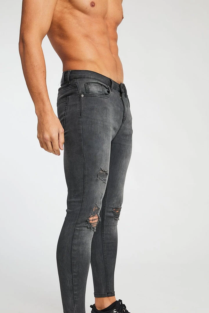 SS20 Super Spray On Ripped And Repaired Jeans – Grey