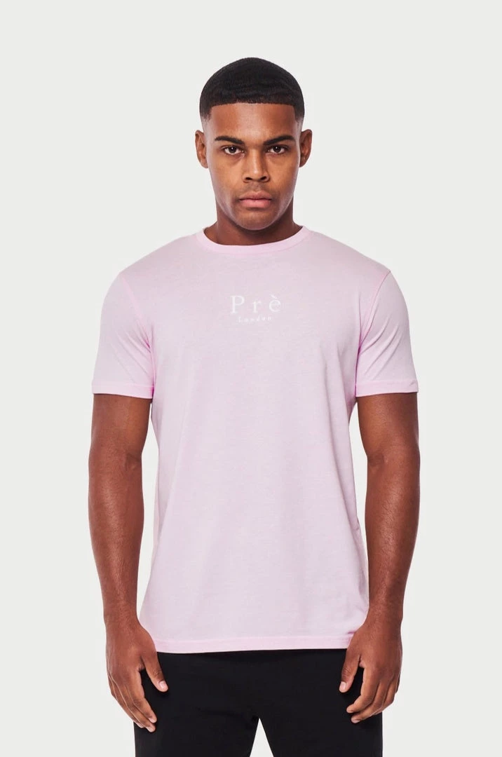 Core T-Shirt in Light Pink,  Highest quality logo printing using the latest injection moulded technology. Our T-shirts are fitted to the arms and designed to be styled with our Prè London Jeans/Trousers.