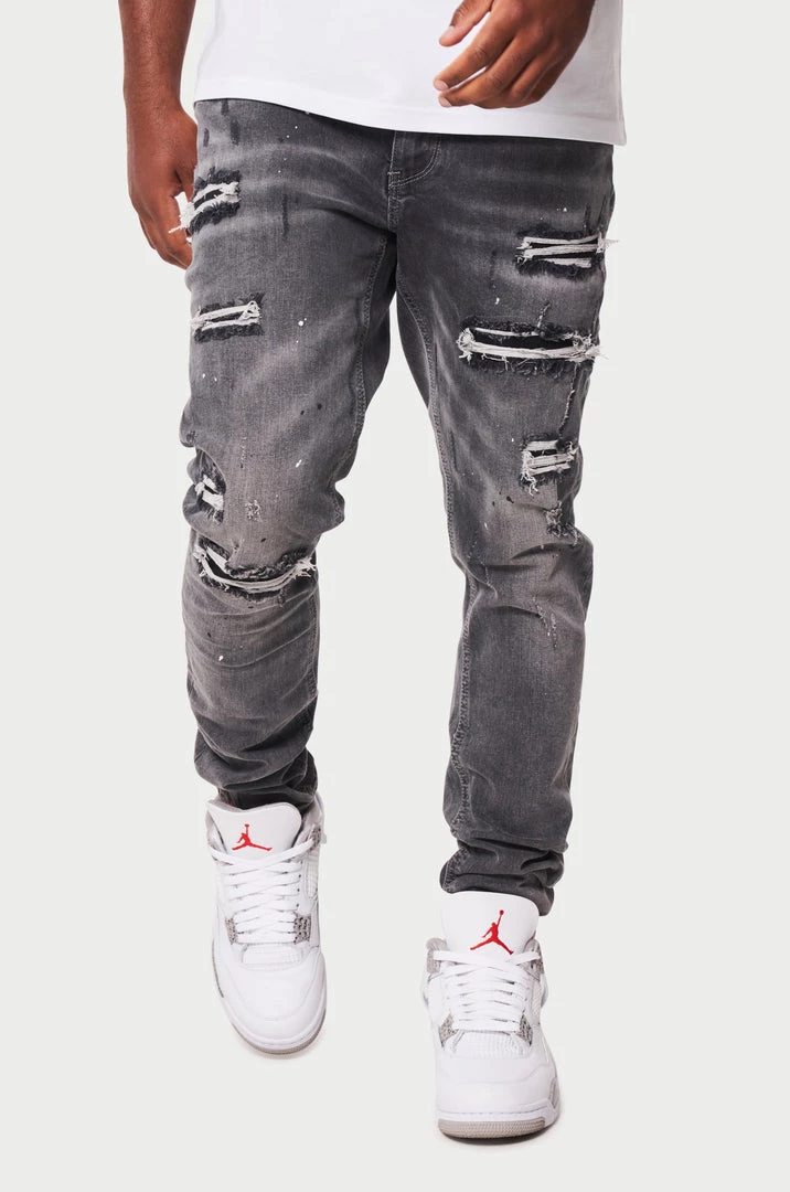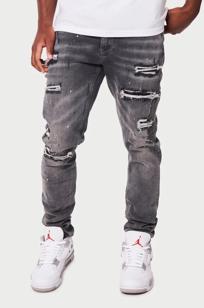 - These slim-fitting jeans also feature fly fastening, classic 5 jean pockets setup & Prè London branding patch to back waistband.Â